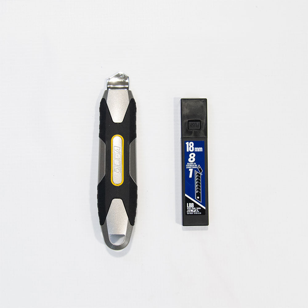 We featured the OLFA 18mm MXP-L Die-Cast Aluminum Handle Ratchet Knife. Incredible knife! The rugged handle offers an ergonomic grip while remaining lightweight. The anti-slip rubber grip provides all-day comfort and safety. A brass locking pin maintains the blade position to cut with confidence.