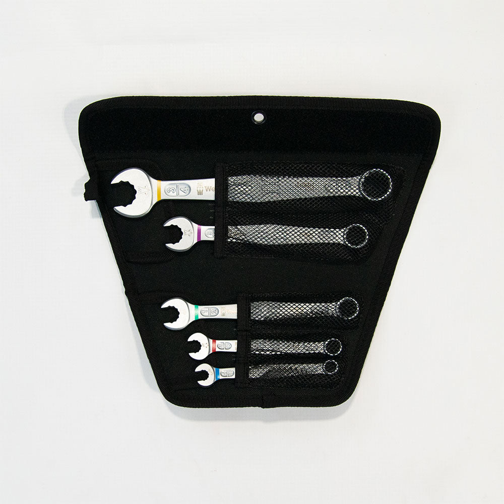 Made in Germany, this wrench set from Wera is as good as it gets. Perfect for tight spaces with a special mouth geometry that expands the placement of the tool. Lightweight and high quality, these wrenches are easy to find with the colour-coding system that Wera is known for. Must haves!
